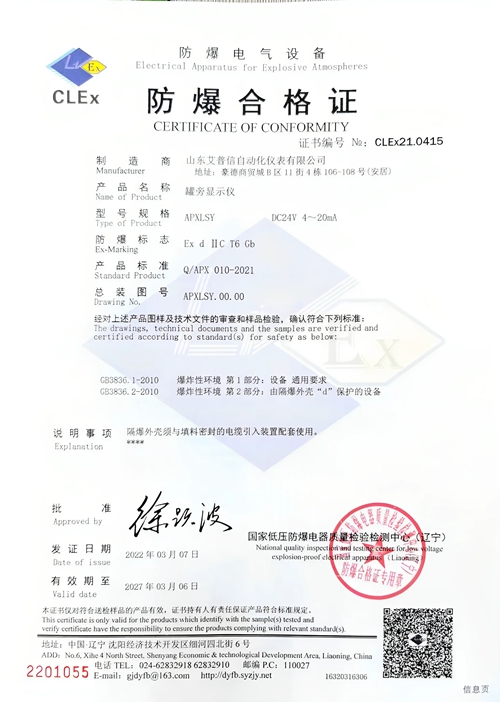 標(biāo)準(zhǔn)款音叉物位開關(guān),優(yōu)質(zhì)防爆鑄造鋁殼,不銹鋼銘牌,sus316叉體材質(zhì)。 型號:APXYC504 應(yīng)用:液體/粉體 供電:24VDC/220AC 輸出:繼電器(DPDT) 連接過程:G1''螺紋 叉體長度:100mm 介質(zhì)溫度:-30℃-80℃ 壓力:≤4MPa 防爆等級:Exd IIC T6 Gb 防護(hù)等級:IP65